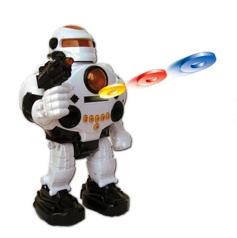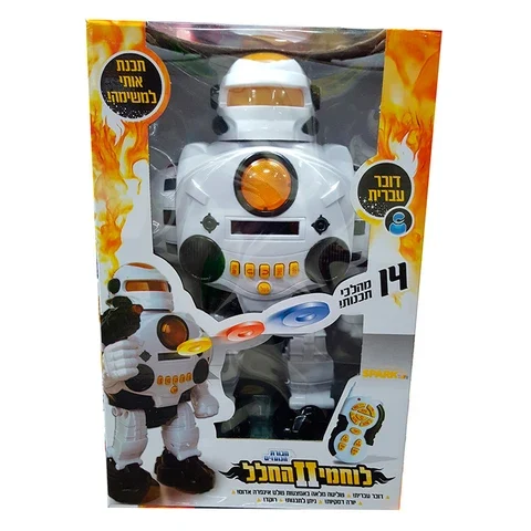 רובוט שלט! דובר עברית! ניתן לתכנות! יורה דיסקיות ספוג! מגוון משפטים בעברית! "עצור! הזדהה מיד או שאני יורה! לייזר נכנס לפעולה!" ניתן לתכנות עד 14 מהלכים! שגר אותו למשימה! שלט רחוק מלא: הליכה קדימה ואחורה גלישה קדימה ואחורה סיבוב לימין ולשמאל ריקוד - הרובוט מבצע ריקוד מלווה במוזיקה